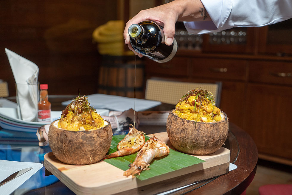 Trazer toda a brasilidade em um único prato e ainda homenagear o bairro que recebe a segunda unidade do Ostradamus, em Florianópolis, foi a ideia do chef Jaime Barcelos ao desenvolver o prato Camarão Cocoqueiros. Ao combinar camarões grelhados com o tropicalismo do abacaxi e manga salteados em gengibre, o chef reuniu ainda no mesmo prato o queijo coalho e castanha do Pará com um arroz de coco. A experiência ao degustar o prato fica ainda mais saborosa com a apresentação, é que o mesmo é servido dentro de um coco seco.